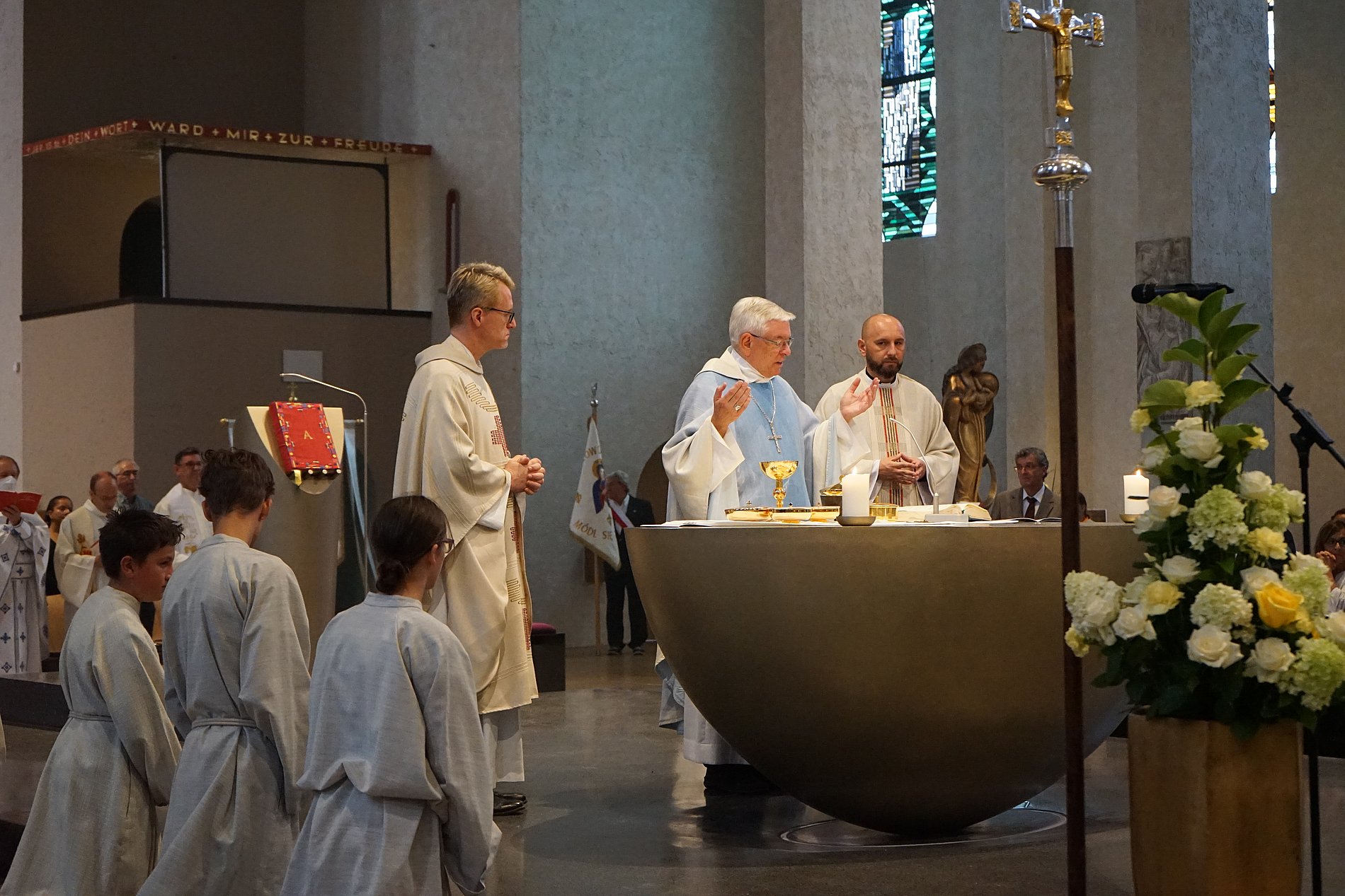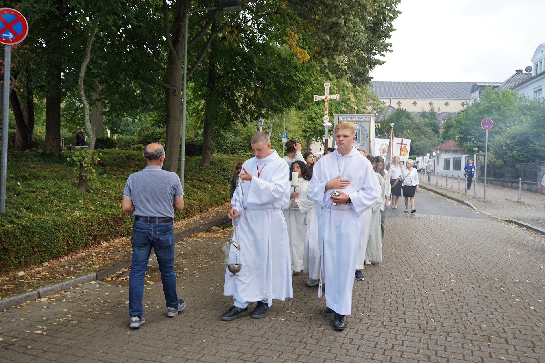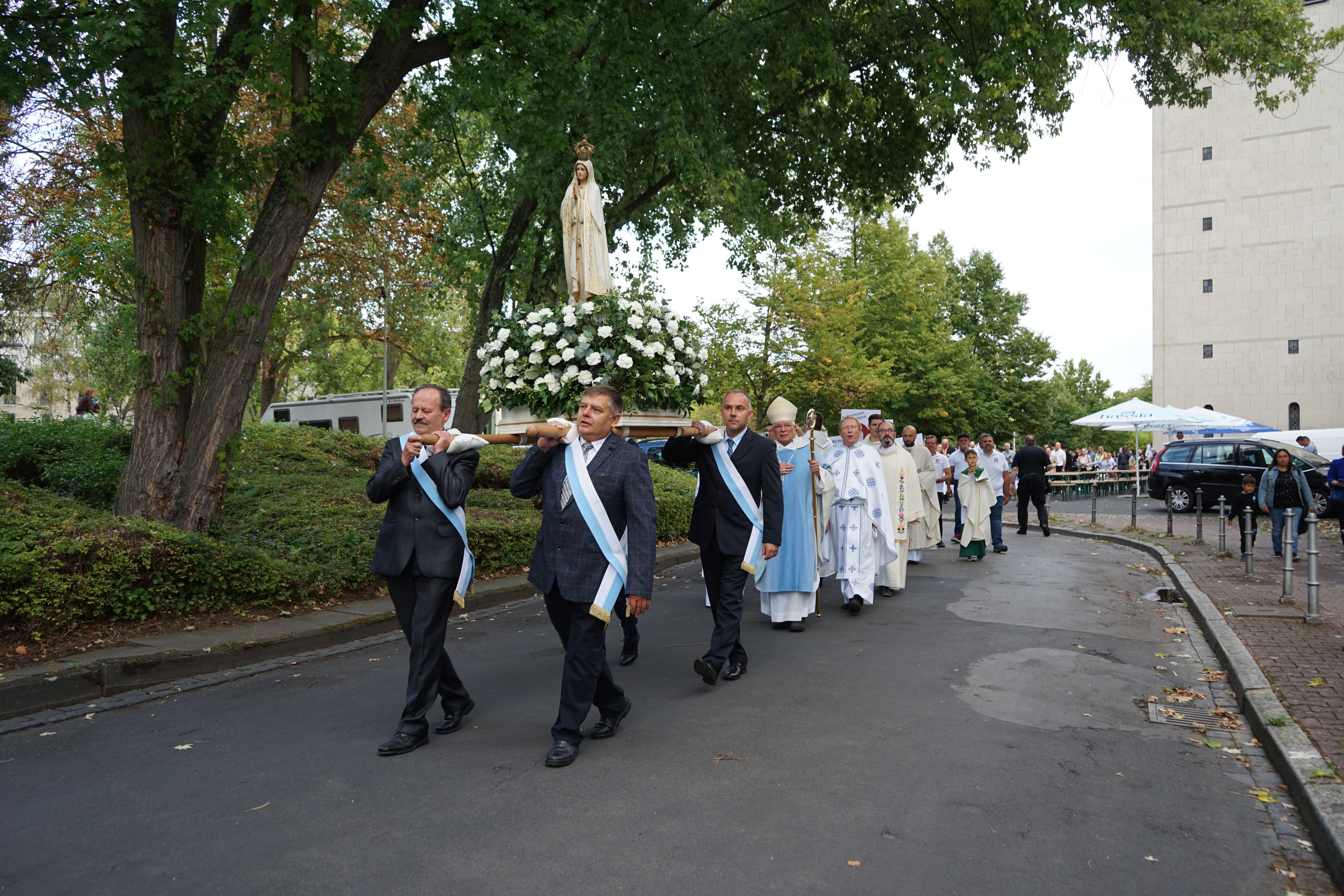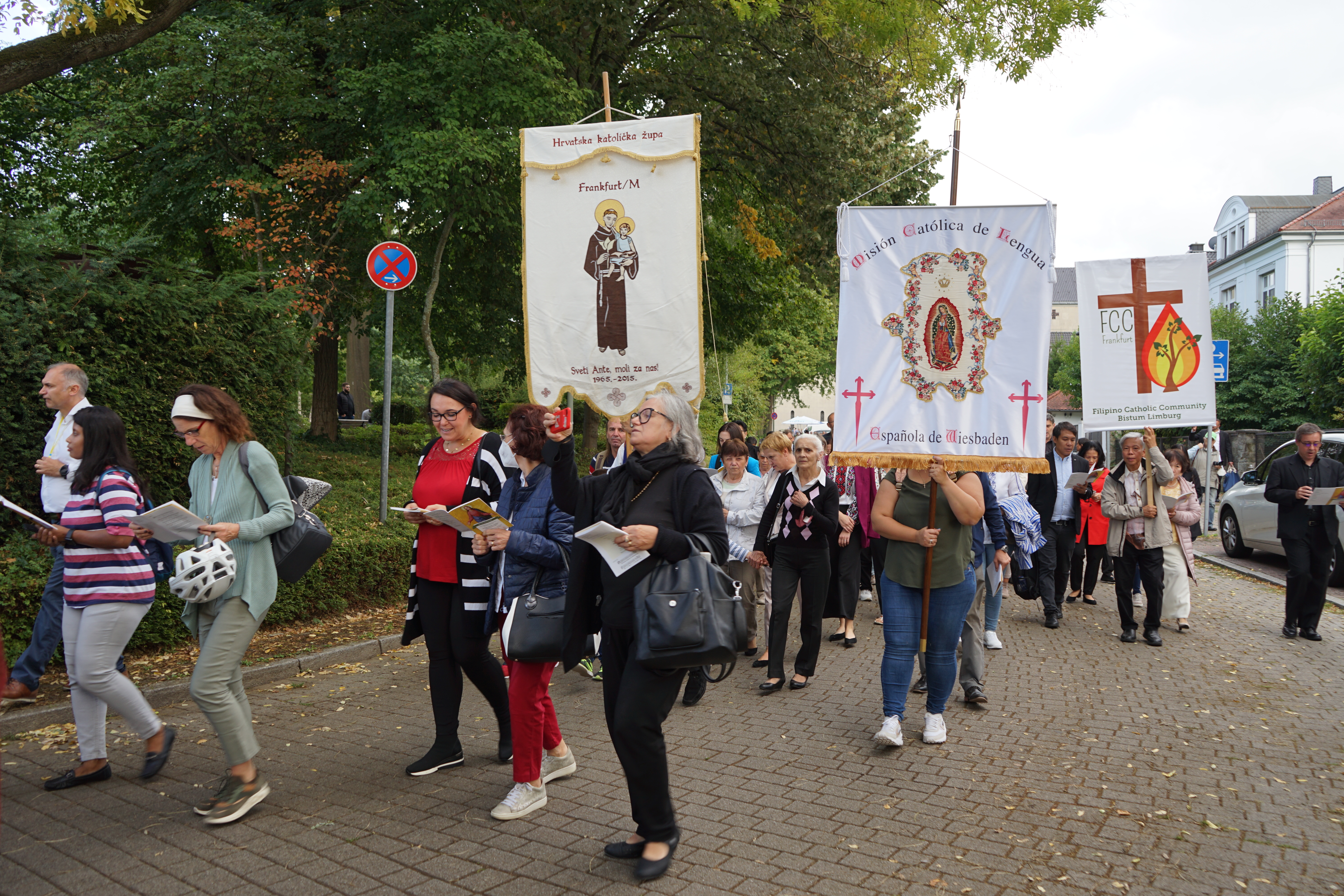Der feierlichen Messe zelebrierte Löhr gemeinsam mit Joachim Braun, Pfarrer von Sankt Marien, Priester Juraj Sabadoš, Pfarrverwalter der Slowakischen Mission der Diözesen Limburg und Fulda, sowie zahlreichen anderen Priestern aus Gemeinden von Katholiken anderer Muttersprache. Berührt zeigten sich viele Menschen von der schönen Musik, die unter Gesamtleitung von Benedikt Milenković die Besonderheit des beliebten Gottesdienstes unterstrich. Christos Theel spielte die Orgel; der Gottesdienst und die anschließende Prozession sowie der Abschluss vor der Kirche wurden vom Vokalensemble „KQuadrat und dem Bläserensemble unter der Leitung von Megumi Roth begleitet. „Ich habe das Gefühl, dieser Gottesdienst wird jedes Jahr großartiger“, lobte denn auch Weihbischof Löhr. Es war der erste Gottesdienst „Mutter aller Völker“, der seit der Sanierung der Frauenfriedenskirche dort wieder gefeiert werden konnte.