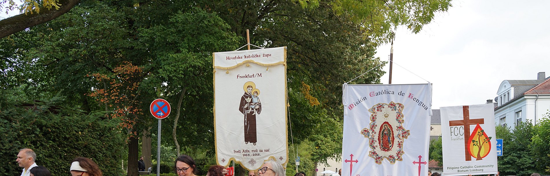 Die große Rolle des Zuhörens zog sich wie ein roter Faden durch das Pontifikalamt „Mutter aller Völker“ mit Weihbischof Dr. Thomas Löhr, das zum neunten Mal von den 33 muttersprachlichen Gemeinden und Pfarreien des Bistums ausgerichtet wurde. Beim Gottesdienst war die Frauenfriedenskirche voll besetzt, zum Teil waren die Menschen in wunderschönen bunten Trachten oder typischer Kleidung ihrer Herkunftsländer erschienen. Nach dem Gottesdienst wurde die von der portugiesischsprachigen Gemeinde liebevoll geschmückte Madonna in einer kurzen Prozession durch Bockenheim getragen.