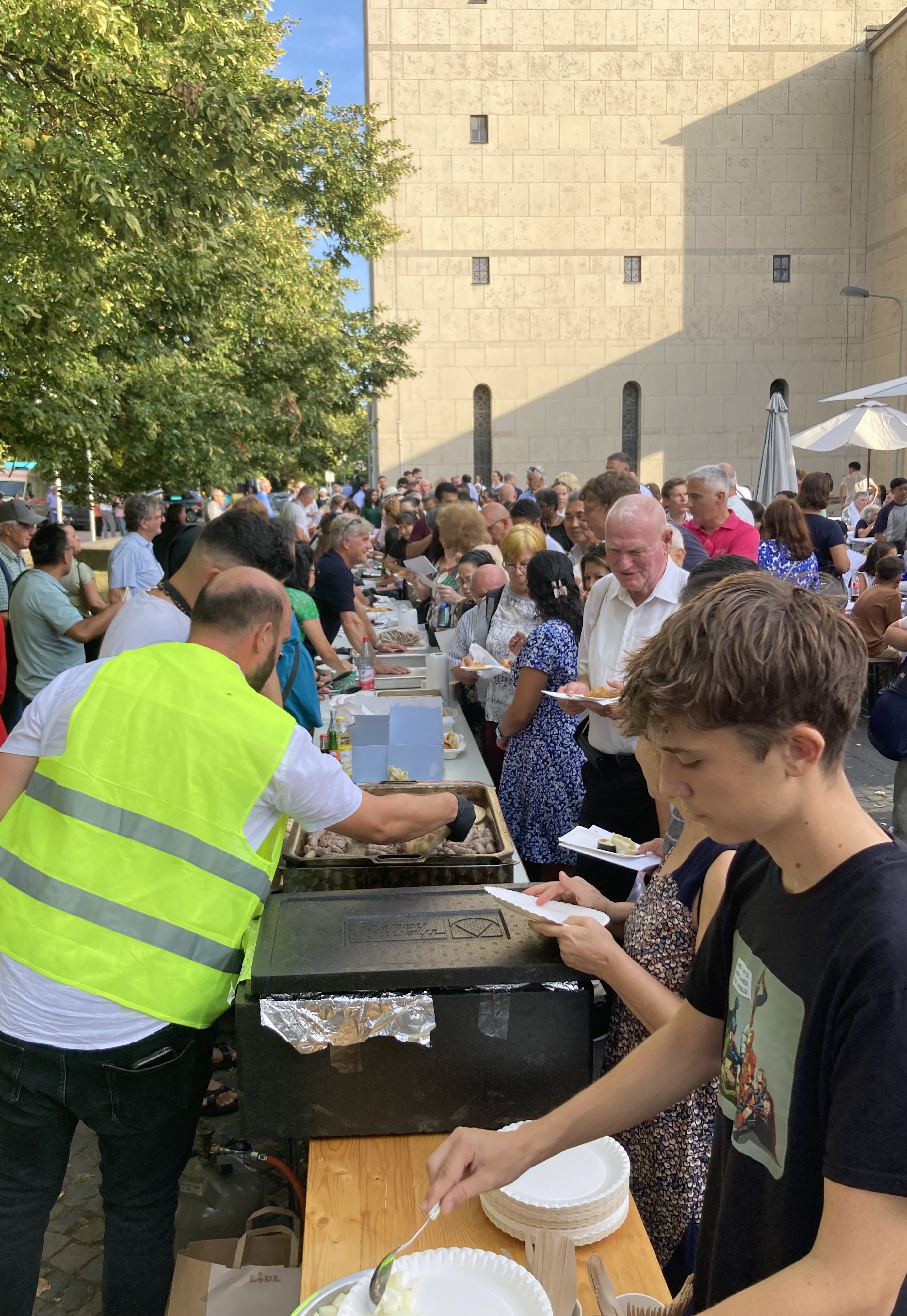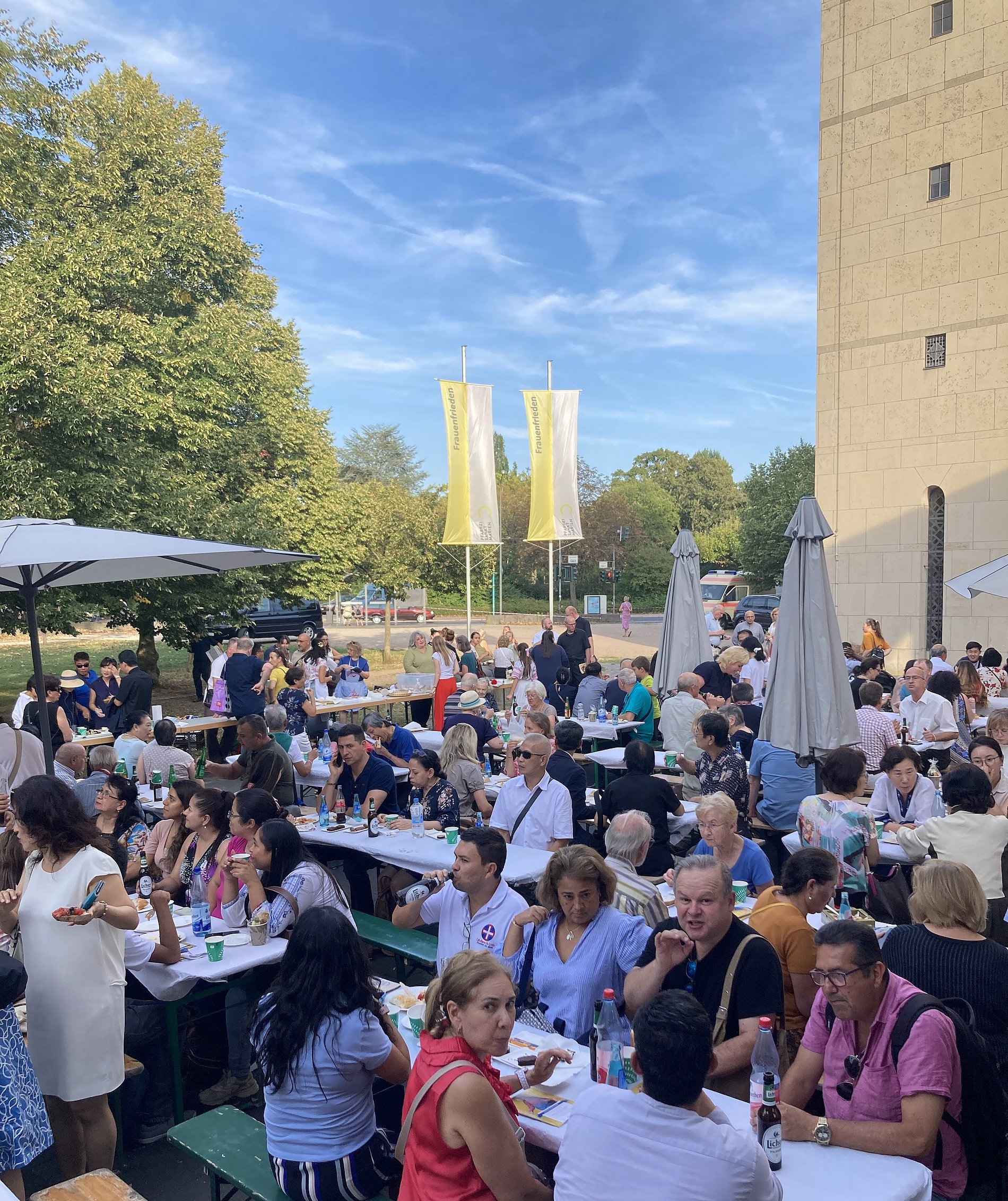 „Die Feier Mariä Geburt ist die einzige Gelegenheit, uns gegenseitig kennenzulernen und wiederzusehen, und das ist ein schöner Moment, der die Einheit stärkt“, sagt Marina Paolella - Di Marco hinter dem Tresen mit leckeren Spezialitäten, die auch Heribert Schmitt gerade probiert hat. Schmitt hat das Marienfest viele Jahre mit Leib und Seele begleitet und mitorganisiert als Referent für die Gemeinden anderer Muttersprache. Heute ist er der Referent für die Einführung und pastoraltheologische Begleitung der Priester aus der Weltkirche. Was ist es für ein Gefühl, heute hier zu sein? „Es ist das Gefühl nach Hause zu kommen. Für mich war und ist Weltkirche mein Leben. Ich war selber in der Weltkirche in Südamerika, habe dann mit Gemeinden anderen Muttersprache und jetzt mit den Priestern aus der Weltkirche gearbeitet, das passt irgendwie zusammen. Ich bin sehr gerne hier und ausnahmsweise ganz entspannt dieses Mal.“